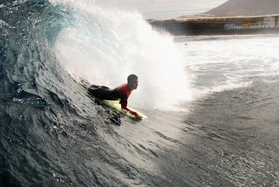 El domingo tocaba lo mismo, madrugon y a recoger a los compis Isaac y Fredy, de camino miramos que había bajado el mar, pero cuando llegamos salían buenas olas en la tubería, la marea estaba baja casi mediada, y el baño iba a ser cortito.